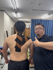 急性期を過ぎていた為、運動療法・超音波・テーピング治療を施しました。