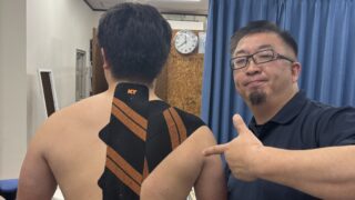 ラグビー部の高校生が来院されました。練習中、スクラムを組んで右背部に痛みが出て来院されました。急性期は過ぎていた為、手技・温熱療法をした後、次の日が練習試合でしたので、KTテープを用いて固定しました。サポートされながらも、可動域を減らして、ダメージが極力減らせるようにテーピングを施しました。当院では、年齢問わず様々なスポーツ外傷に対応しております。お悩みの方は、ぜひ一度ジャイロ整骨院へお越しください!皆さまのご来院、心よりお待ちしております☆ジャイロ整骨院〒812-0026福岡市博多区上川端町13-3青龍ビル103TEL:092‐262-1181